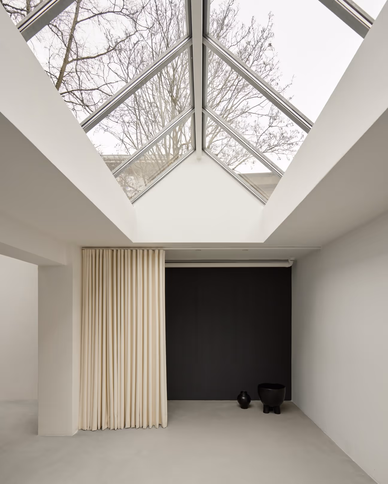 Studio Ahrt is a 115 m² space combining a gallery and studio, with skylights and a small, green patio.
